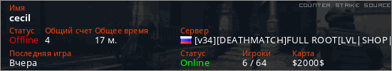 Последний раз был в сети Вчера Игрок с таким ником замечен на 9 серверах