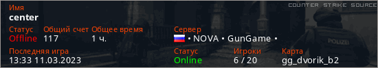 Играет на Counter Strike Source сервере. Страна: РоссияПервый раз замечен 10:02 27.02.2023