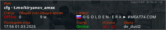Играет на Counter Strike 1.6 сервере. Страна: РоссияПервый раз замечен 06:52 22.11.2025