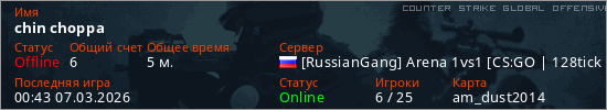 Играет на Counter Strike Global Offensive сервере. Страна: РоссияПервый раз замечен 00:41 07.03.2026