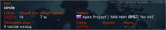 Играет на Counter Strike Global Offensive сервере. Страна: РоссияПервый раз замечен 19:40 29.04.2026