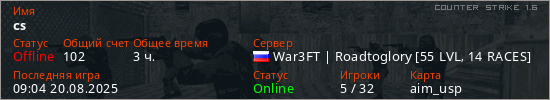 Играет на Counter Strike 1.6 сервере. Страна: РоссияПервый раз замечен 18:18 23.05.2021