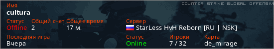 Играет на Counter Strike Global Offensive сервере. Страна: РоссияПервый раз замечен 14:28 25.02.2026