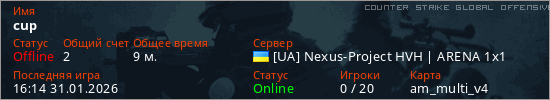 Играет на Counter Strike Global Offensive сервере. Страна: УкраинаПервый раз замечен 15:59 31.01.2026