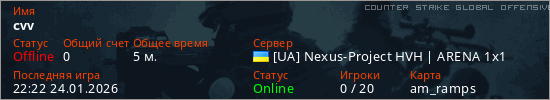 Играет на Counter Strike Global Offensive сервере. Страна: УкраинаПервый раз замечен 22:12 24.01.2026