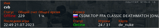 Последний раз был в сети 22:49 21.07.2023 Игрок с таким ником замечен на 7 серверах
