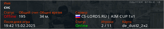 Последний раз был в сети 19:42 15.02.2025 Игрок с таким ником замечен на 17 серверах