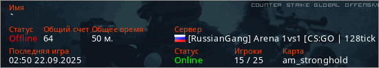 Играет на Counter Strike Global Offensive сервере. Страна: РоссияПервый раз замечен 15:01 26.12.2023