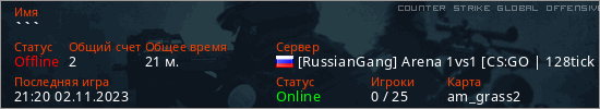 Играет на Counter Strike Global Offensive сервере. Страна: РоссияПервый раз замечен 15:18 30.10.2023