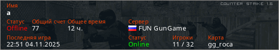 Играет на Counter Strike 1.6 сервере. Страна: РоссияПервый раз замечен 17:37 15.01.2023