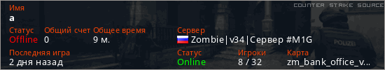 Играет на Counter Strike Source сервере. Страна: РоссияПервый раз замечен 17:14 22.09.2025