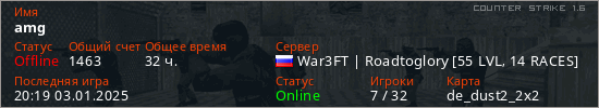 Играет на Counter Strike 1.6 сервере. Страна: РоссияПервый раз замечен 08:10 07.07.2021