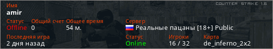 Играет на Counter Strike 1.6 сервере. Страна: РоссияПервый раз замечен 08:39 11.05.2023