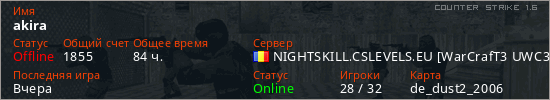 Последний раз был в сети Вчера Игрок с таким ником замечен на 27 серверах