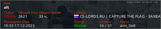 Играет на Counter Strike 1.6 сервере. Страна: РоссияПервый раз замечен 19:04 07.12.2021