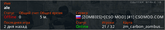 Последний раз был в сети 2 дня назад Игрок с таким ником замечен на 22 серверах