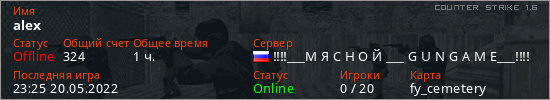 Последний раз был в сети 23:25 20.05.2022 Игрок с таким ником замечен на 60 серверах