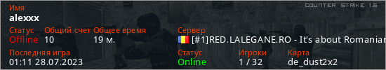 Играет на Counter Strike 1.6 сервере. Страна: РумынияПервый раз замечен 09:44 09.09.2022
