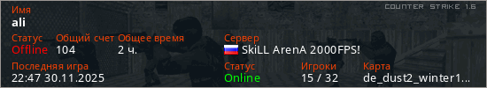 Играет на Counter Strike 1.6 сервере. Страна: РоссияПервый раз замечен 15:24 18.07.2022