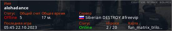 Играет на Counter Strike Source сервере. Страна: РоссияПервый раз замечен 05:39 13.07.2023