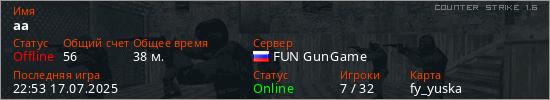 Последний раз был в сети 22:53 17.07.2025 Игрок с таким ником замечен на 50 серверах