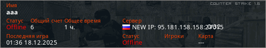 Играет на Counter Strike 1.6 сервере. Страна: РоссияПервый раз замечен 21:18 20.07.2025