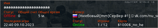 Последний раз был в сети 22:40 09.10.2023 Игрок с таким ником замечен на 10 серверах