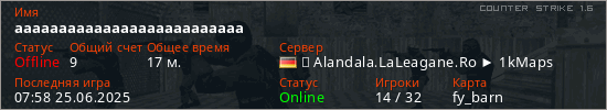 Играет на Counter Strike 1.6 сервере. Страна: ГерманияПервый раз замечен 14:01 22.05.2025