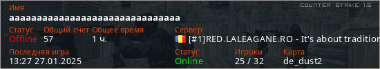 Играет на Counter Strike 1.6 сервере. Страна: РумынияПервый раз замечен 13:07 16.07.2022