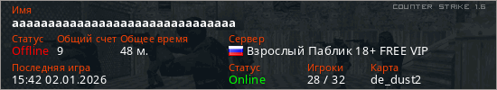 Последний раз был в сети 15:42 02.01.2026 Игрок с таким ником замечен на 24 серверах