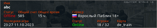 Играет на Counter Strike 1.6 сервере. Страна: РоссияПервый раз замечен 00:22 02.04.2020