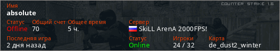 Последний раз был в сети 2 дня назад Игрок с таким ником замечен на 55 серверах