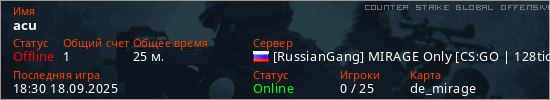 Играет на Counter Strike Global Offensive сервере. Страна: РоссияПервый раз замечен 15:49 12.06.2025