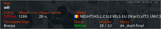 Играет на Counter Strike 1.6 сервере. Страна: РумынияПервый раз замечен 11:23 25.09.2024