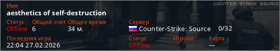Играет на Counter Strike Source сервере. Страна: РоссияПервый раз замечен 00:33 04.02.2026