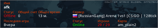 Играет на Counter Strike Global Offensive сервере. Страна: РоссияПервый раз замечен 09:40 06.03.2026