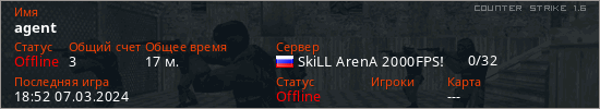 Играет на Counter Strike 1.6 сервере. Страна: РоссияПервый раз замечен 20:35 31.05.2023