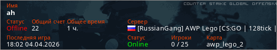 Играет на Counter Strike Global Offensive сервере. Страна: РоссияПервый раз замечен 07:46 14.02.2026