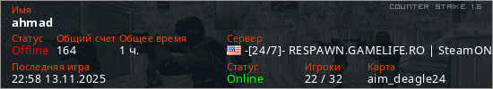 Играет на Counter Strike 1.6 сервере. Страна: СШАПервый раз замечен 20:40 17.02.2025