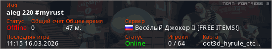 Играет на Team Fortress 2 сервере. Страна: РоссияПервый раз замечен 10:17 16.03.2026