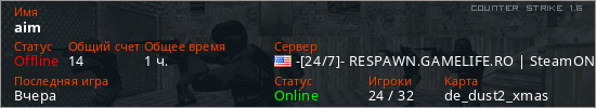 Играет на Counter Strike 1.6 сервере. Страна: СШАПервый раз замечен 16:42 02.02.2025
