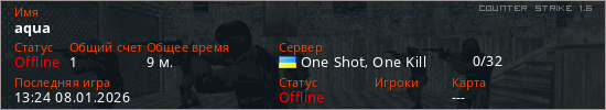 Играет на Counter Strike 1.6 сервере. Страна: УкраинаПервый раз замечен 22:56 07.01.2026