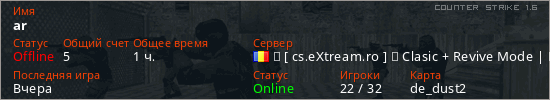 Последний раз был в сети Вчера Игрок с таким ником замечен на 15 серверах