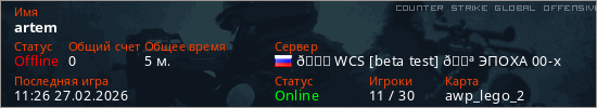 Играет на Counter Strike Global Offensive сервере. Страна: РоссияПервый раз замечен 10:59 27.02.2026