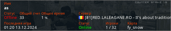 Играет на Counter Strike 1.6 сервере. Страна: РумынияПервый раз замечен 20:15 21.03.2023
