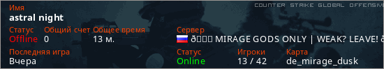 Играет на Counter Strike Global Offensive сервере. Страна: РоссияПервый раз замечен 16:25 11.02.2026