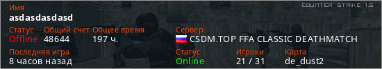 Последний раз был в сети 17 часов назад Игрок с таким ником замечен на 22 серверах