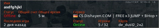 Последний раз был в сети 2 дня назад Игрок с таким ником замечен на 10 серверах