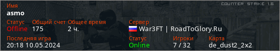 Играет на Counter Strike 1.6 сервере. Страна: РоссияПервый раз замечен 06:16 28.12.2020