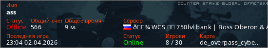 Играет на Counter Strike Global Offensive сервере. Страна: РоссияПервый раз замечен 11:54 01.04.2026